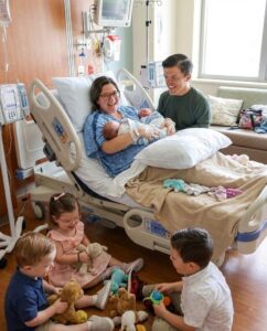 But perhaps the sweetest detail of the photograph is what is happening on the floor. The couple’s older children—Jackson, Lilah, and Josiah—can be seen playing contentedly with stuffed animals at the foot of the bed. The scene perfectly encapsulates the beautiful, chaotic love that fans have come to adore about the family: a mix of tender newborn moments and the playful energy of toddlers.